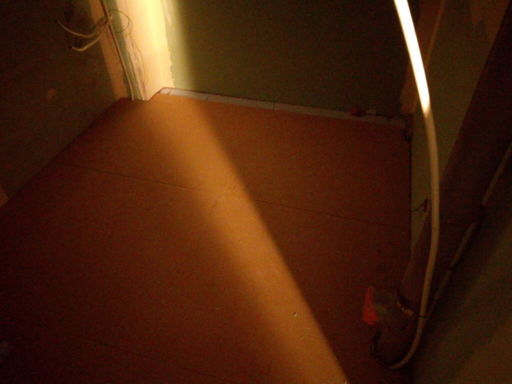 Le sol à ensuite été recouvert de parquet hydrofuge grand passage (comme tout le reste de l’appartement) avant la pose de la faïence.