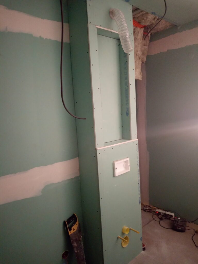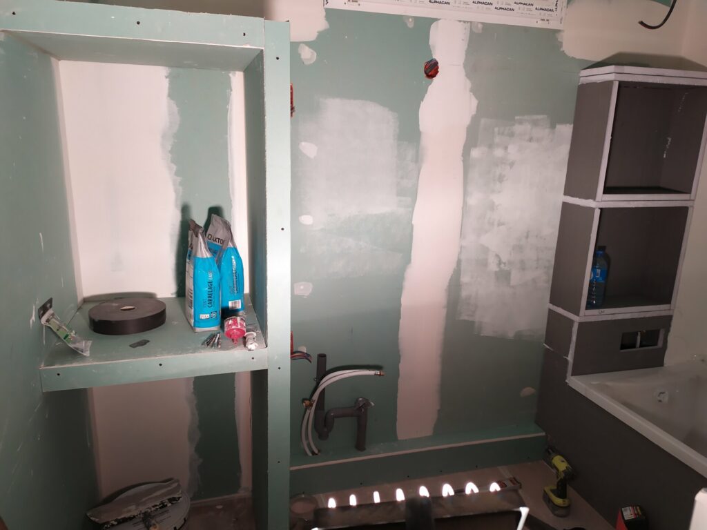L’habillage a ensuite été réalisé en rail et double épaisseur de placo hydro.