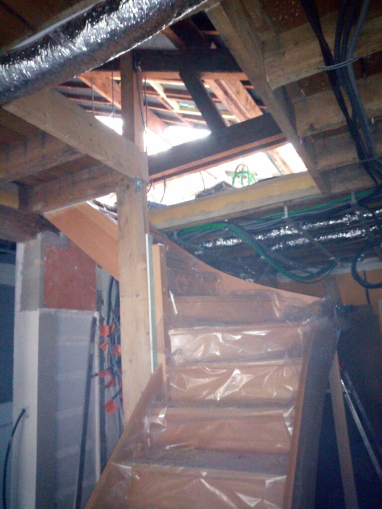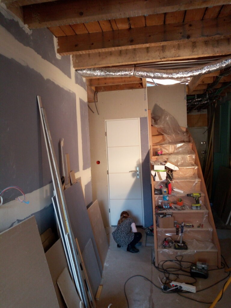 Si vous avez suivi les épisodes précédents, j’avais déjà ouvert une trémie temporaire pour avoir un accès à l’étage.