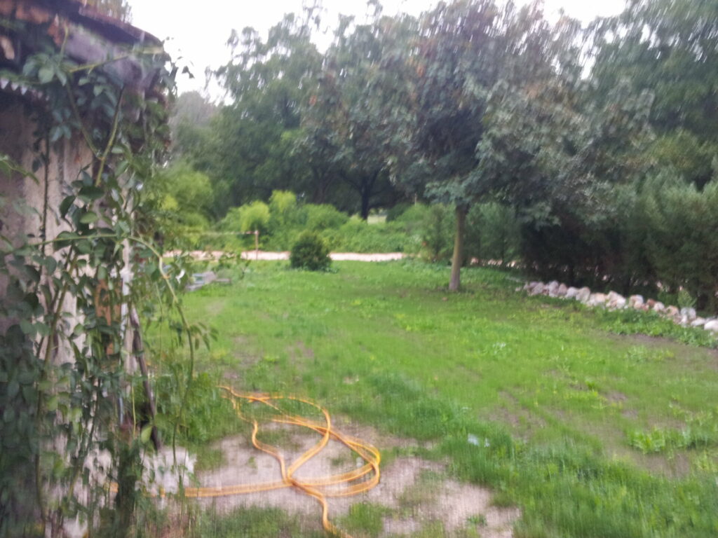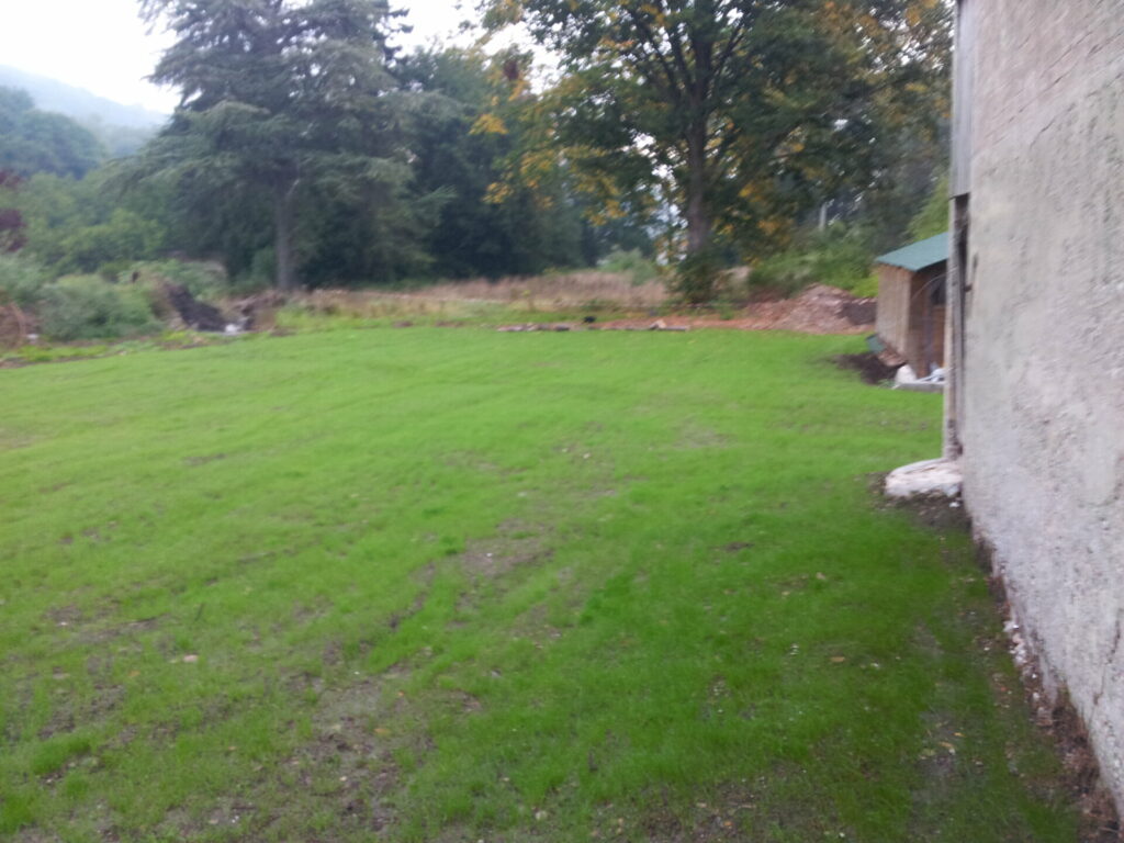 Enfin, le père de mon pote à terrassé tout le terrain au tracto pour avoir la surface la plus plane possible et on a terminé la journée en ensemant tout le terrain de semences de gazon …