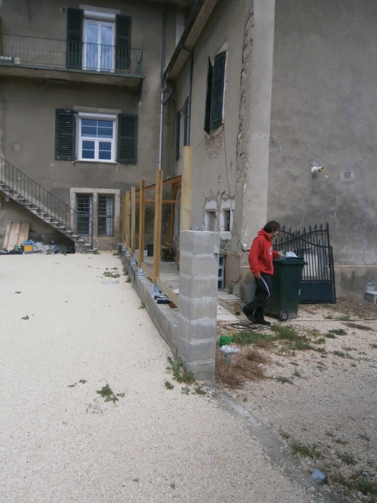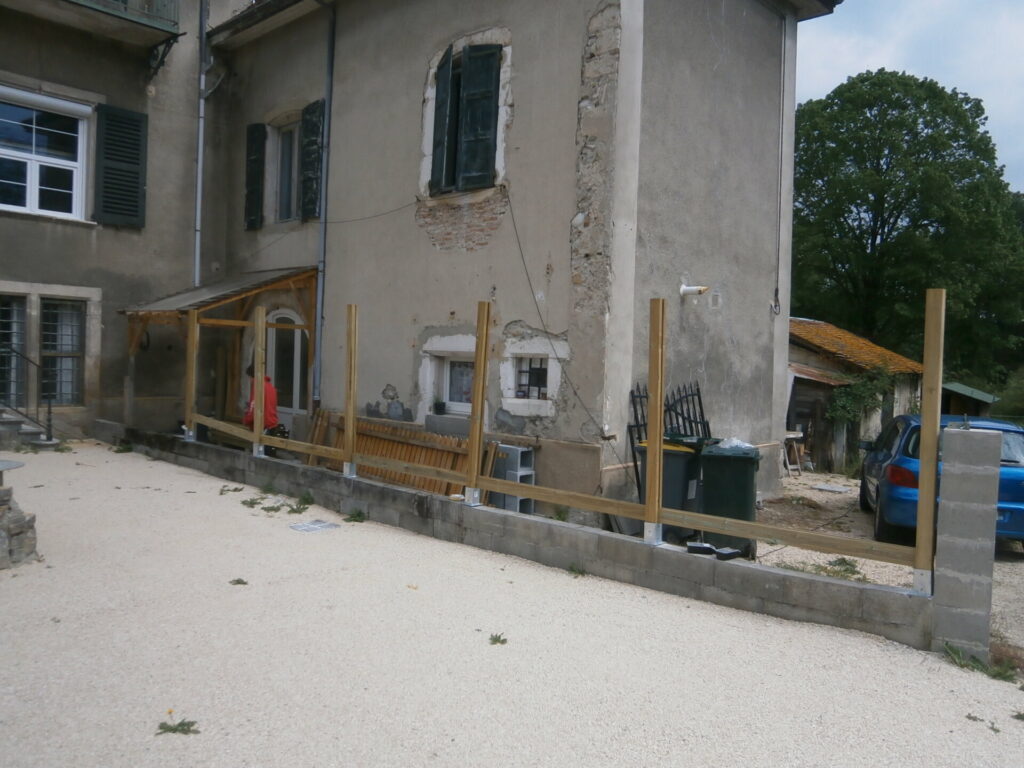 Donc sur la face avant de la maison il y avait un muret jonché d’une petite cloture en bois … C’était pas si mal jusqu’a ce que la maison d’a côté soit rachetée par des promotteurs pour être transformée en plateaux …