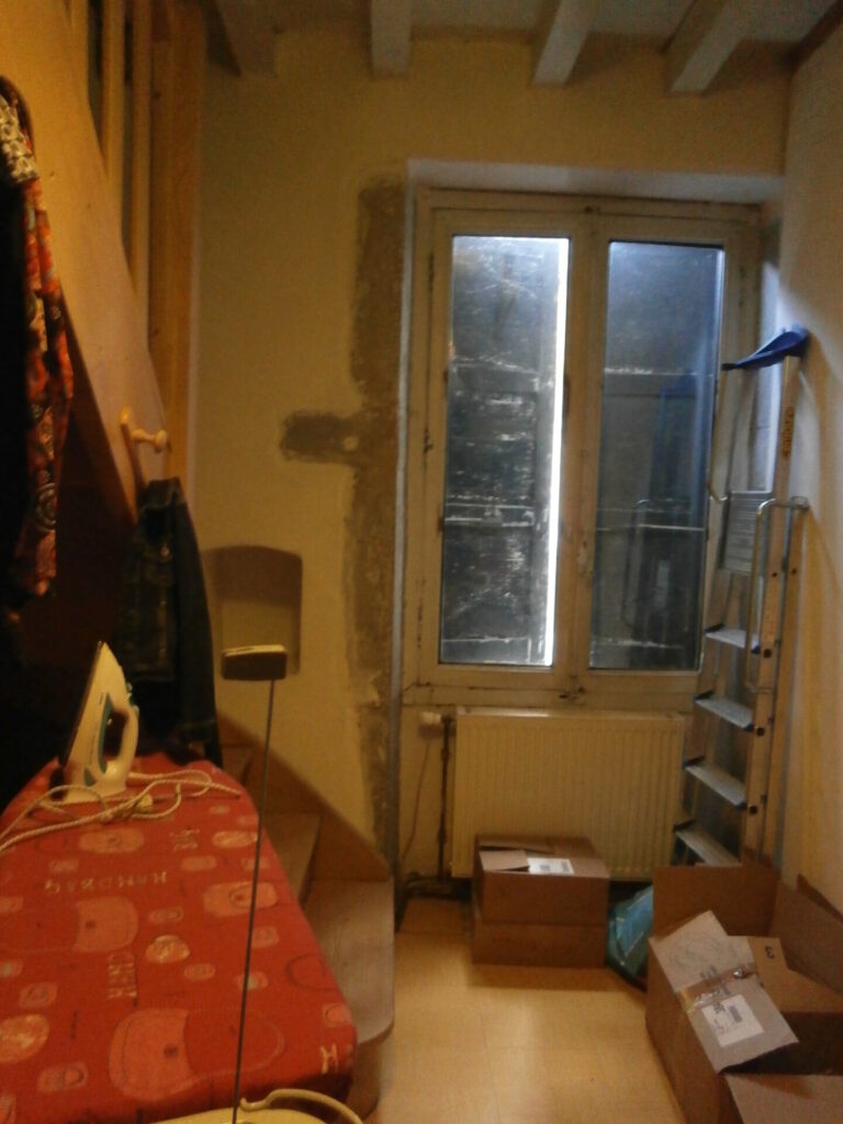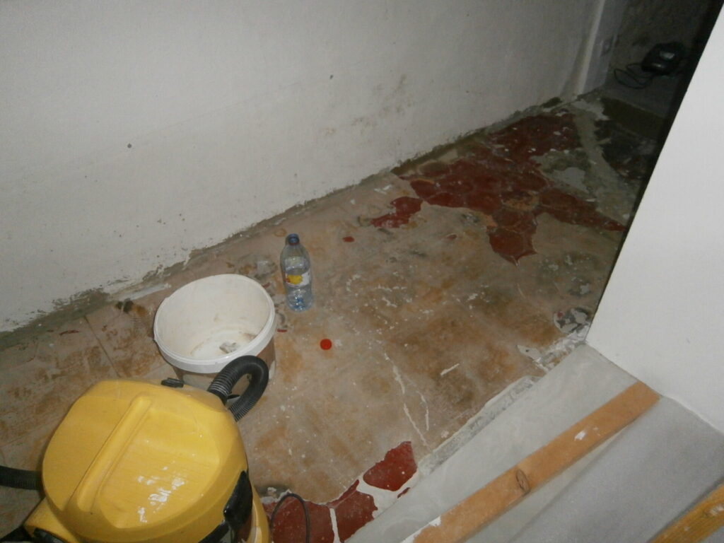 Le sol était recouvert de lino pour cacher la misère … Il a donc fallu faire un ragréage auto-nivellant avant de pouvoir poser du parquet …