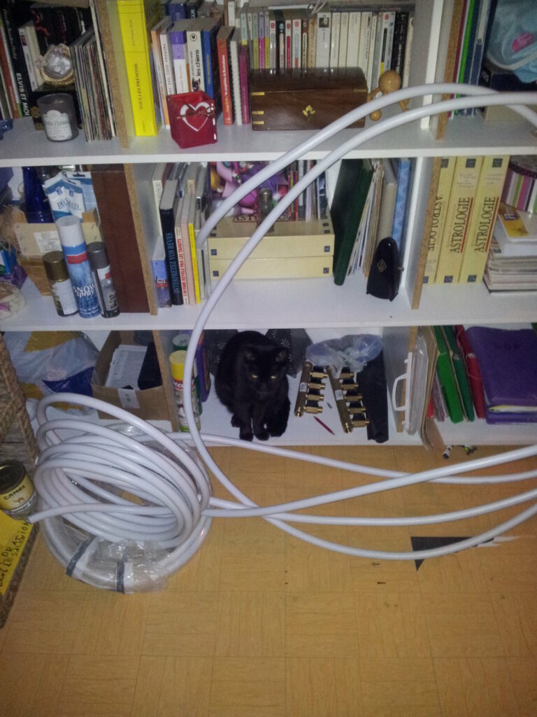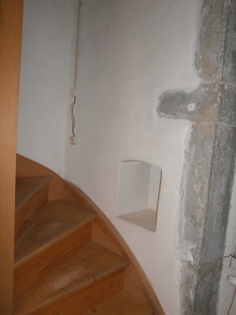 Le chauffe eau qui se trouvait dans la salle bain a été ensuite déplacé sous le nouvel escalier lorsque la salle de bain a été refaite, et l’arrivée d’eau en multicouche a été encastré dans la dalle existante.