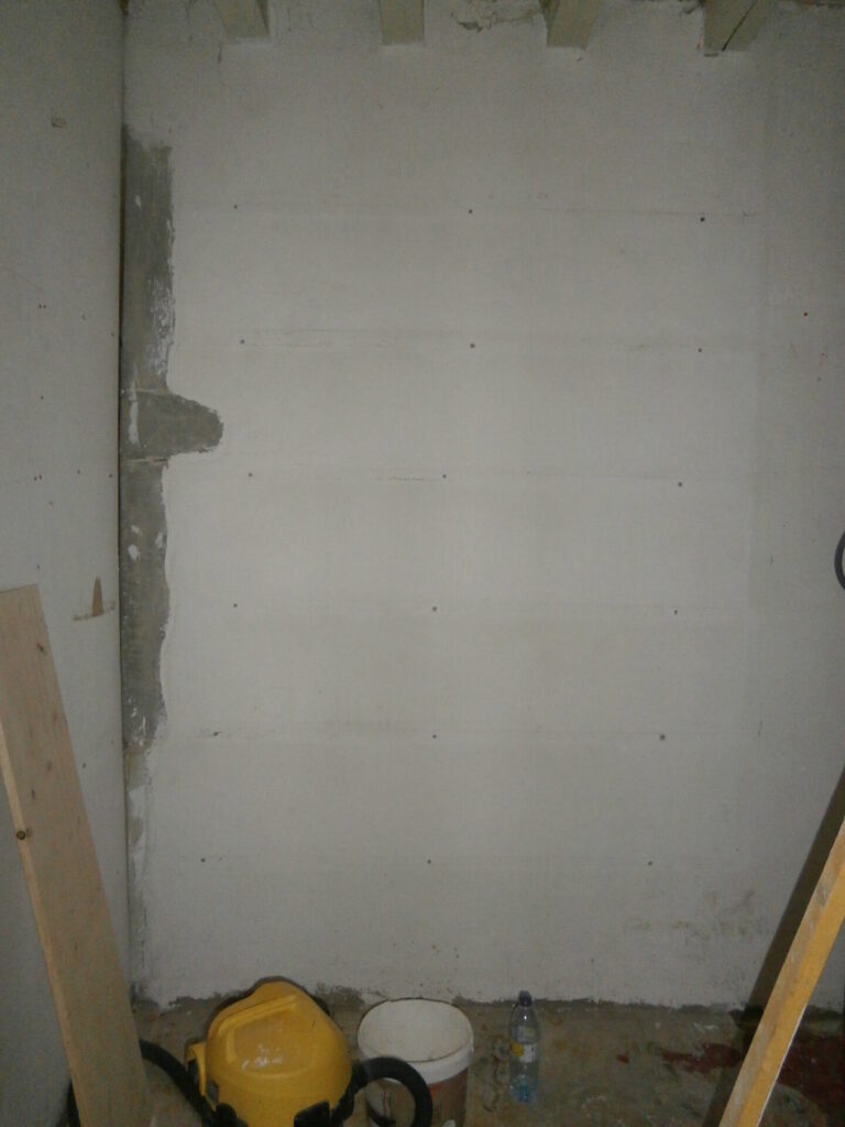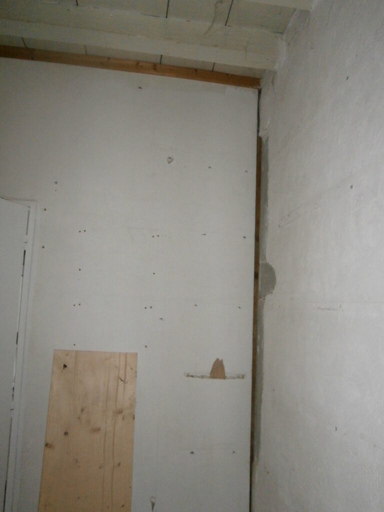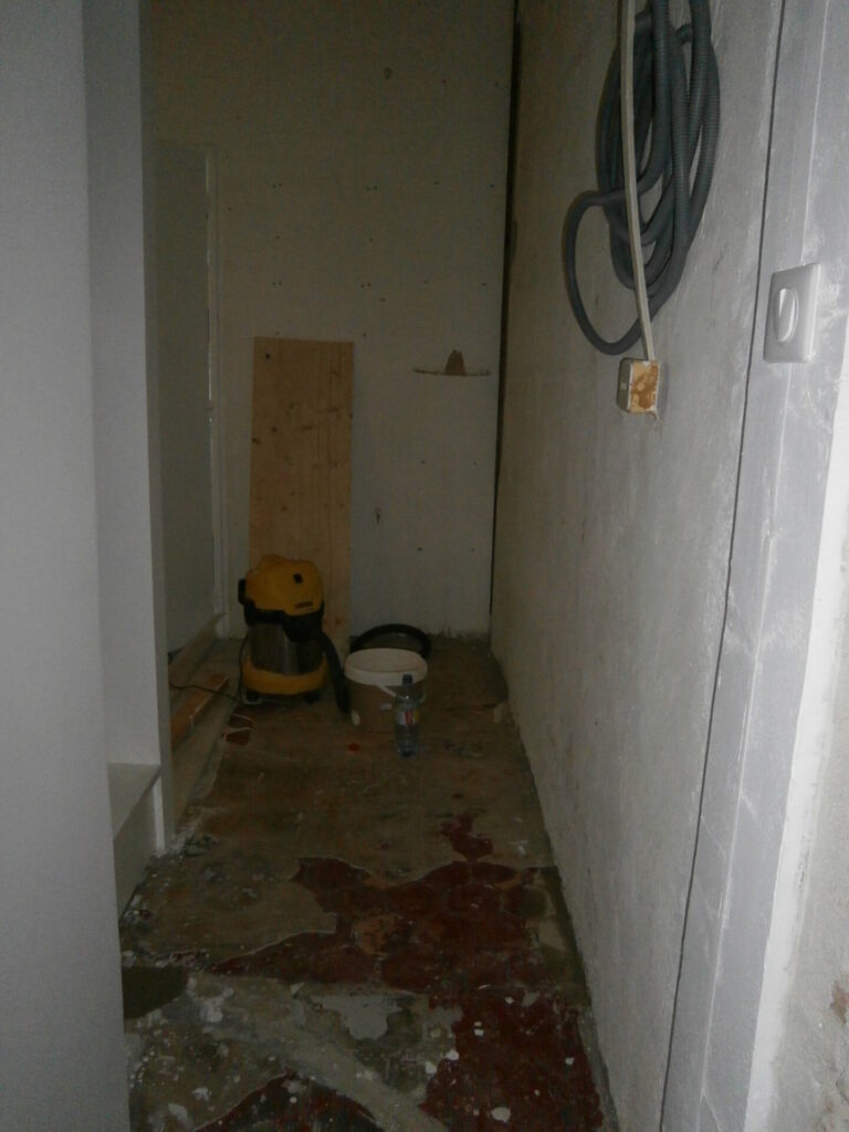 La cloison de la salle de bain a été refaite, comme vous pouvez le voir sur la première photos les angles de la cloison ne joignaient même pas les murs …